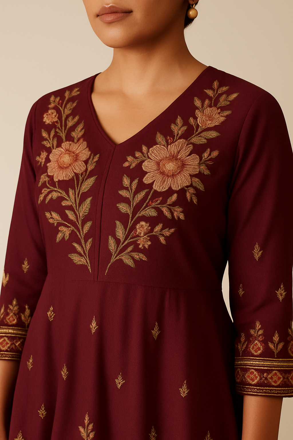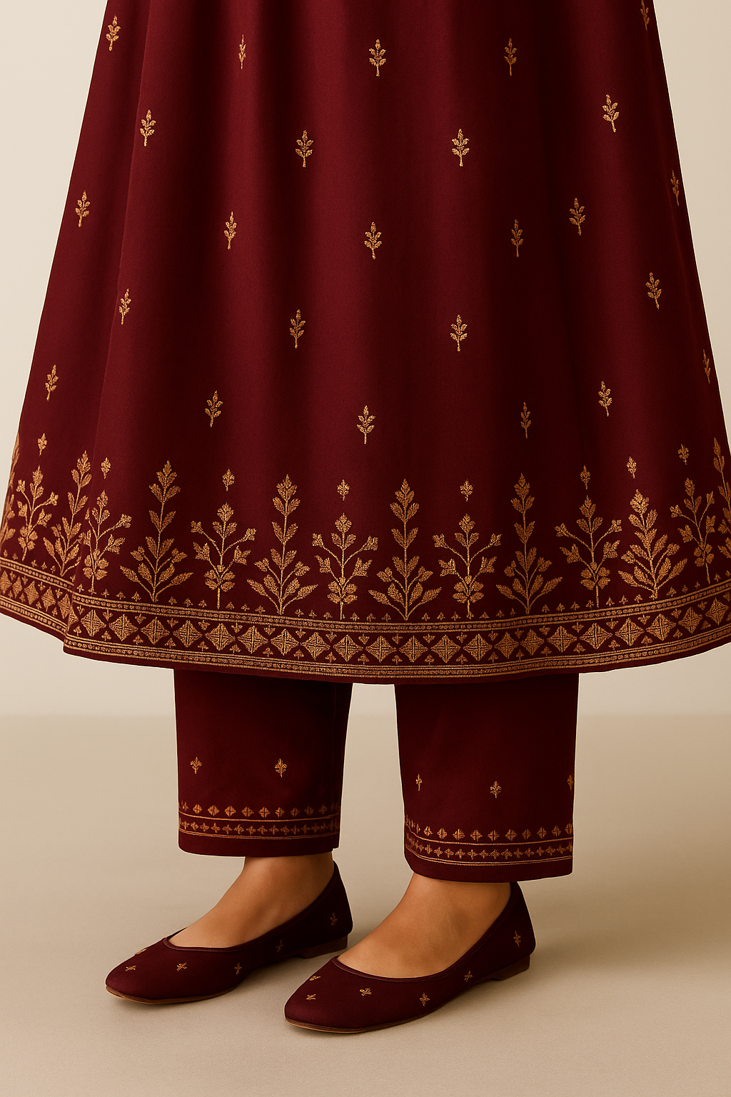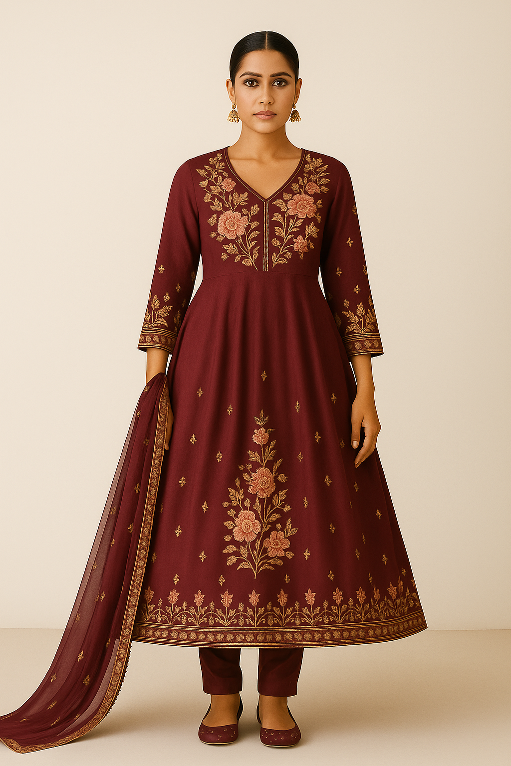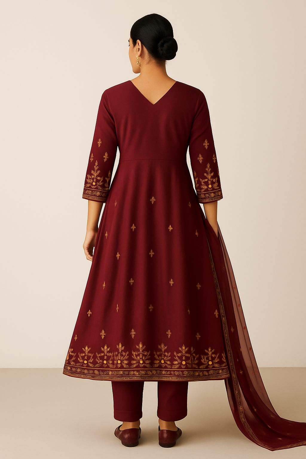 Gulzaar Maroon Embroidered Anarkali Suit Set